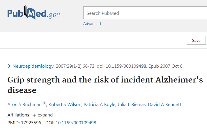 “Grip strength and the risk of incident Alzheimer's disease” from ncbi,